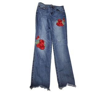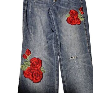 KanCan Jeans Womens Size 3 Skinny Mid Rise Embroidered Red Rose Denim Pants
