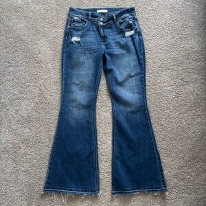 KanCan Johns Creek High Rise CrossOver Waist Flare Blue Jeans size 13/30