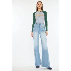 KanCan Juniors Janna High Rise 90's Flare Denim Blue Jeans Size 15/31 Button Fly