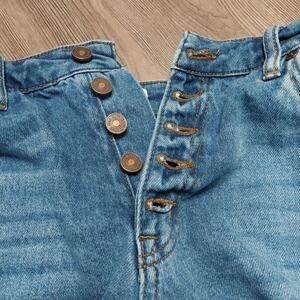 KanCan Junior's Medium Wash Button Fly Distressed Raw Hem Blue Denim Jean Shorts