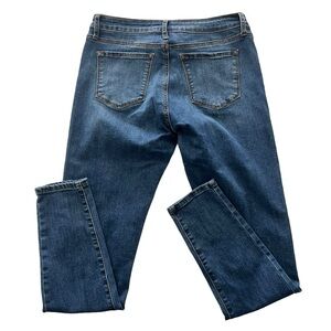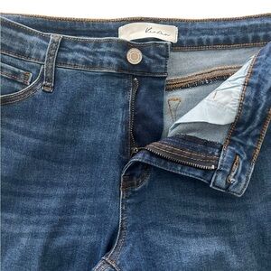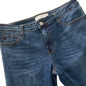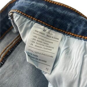 KanCan Juniors Skinny Jeans. Size 11. Medium blue wash denim. Classic 5 pocket design. Zip fly and single button front closure. Approximate measurements as pictured. 54% cotton 34% rayon 10% polyester 2% spandex. Machine washable. Good used condition.