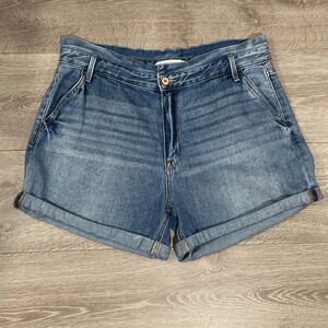 KanCan Lansing High Rise Denim Jean Shorts in size 31. Great preowned condition. Faded denim with whisker details, folded hem, stretch denim, 4 pockets, zipper and button front closure. Please see photos for approximate measurements and details. Item may show a difference in color based upon photography and perception. Photos are part of the description, as everyone’s level of condition may vary. From smoke free and pet free home. All packages are shipped the same or next business day.