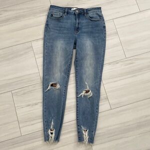 KanCan Leopard Distressed High Rise Ankle Cropped Frayed Jeans 11/29