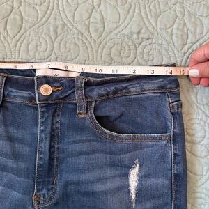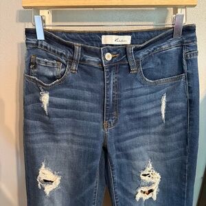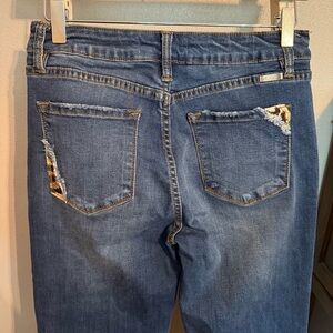 KanCan Leopard Patch Distressed Denim Straight Leg Jeans Size 9/28 High Rise