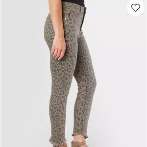 KanCan Leopard Print Skinny Cropped Raw Hem Jeans Size 9/28