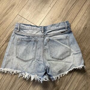 KanCan Light Wash High Rise Buckle Detail Distressed Raw Hem Frayed Shorts