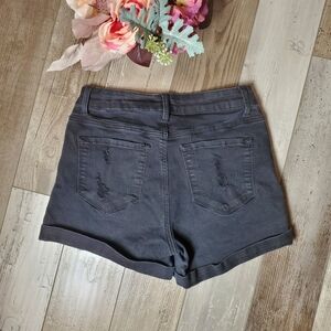 KanCan Los Angeles Distressed Black Denim Women's Stretchy Cuffed Jean Shorts