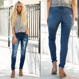 KanCan Medium Wash Blue Distressed Ripped Mid Rise Skinny Jeans Size 26/5