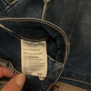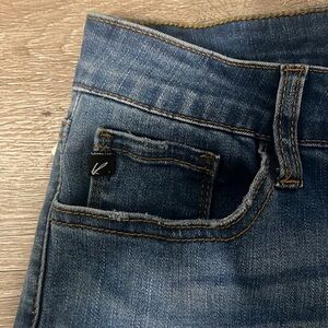 Classic KanCan skinny jeans with traditional 5-pocket styling. Medium wash denim with subtle fading. Fitted silhouette through hip and leg. Clean hemline with no distressing.