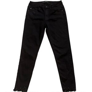 Mid Rise Ankle Skinny Frayed Hem Denim Jeans in black. In excellent condition.
