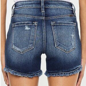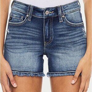 KanCan Mid Rise Released Frayed Hem 4in Short - 24