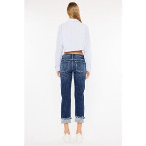 KanCan Mid Rise Slim Distressed Raw Hem Boyfriend Jeans Juniors Size 15/31 EUC