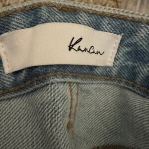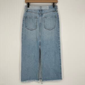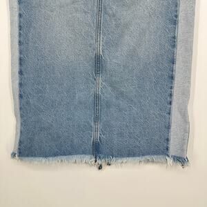 KanCan Midi Denim Light Wash Two Tone Back Slit Raw Hem Pockets Skirt Small