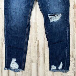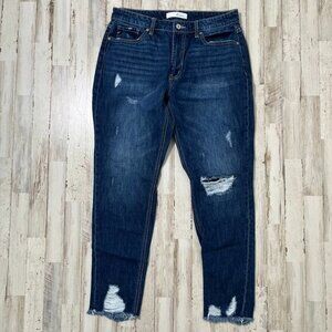 KanCan Mom Jeans Dark Wash Denim Distressed Womens Size 9/28