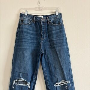 KanCan Montana Ultra High Rise 90's Flare Jeans Dark Wash Size 28 9 Distressed