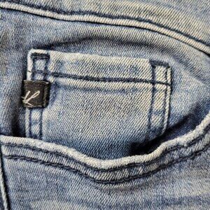 KanCan Moto Crop Jeans Size 27 29X29.5 Skinny Tapered Distressed Ribbed Raw Hem