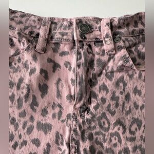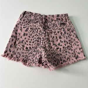 KanCan Pink and Black Cheetah Print Denim Shorts