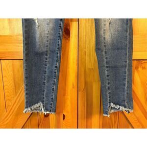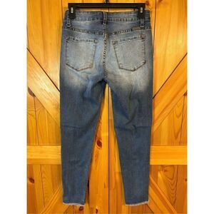 KanCan Raw Hem Medium Wash Skinny Jeans Size 7/27 Distressed stretch measurements 26” waist 26” inseam 9” rise (0924)