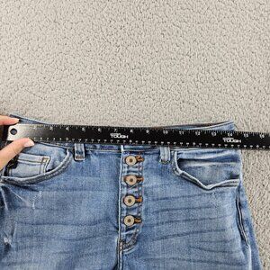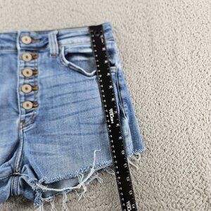 KanCan Shorts Womens 29 Blue Distressed Frayed Hem High Rise Button Fly Denim