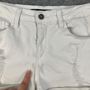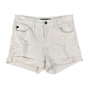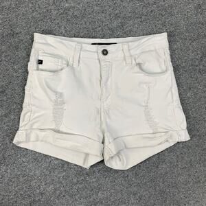 KanCan Shorts Womens 7/27 White Denim Distressed Mid Rise Cuffed Stretch Pockets