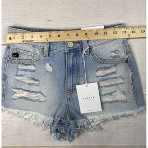 KanCan Shorts Womens Sz 0 23 Light Wash Denim Distressed High Rise worn once