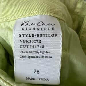 The KanCan Signature 90s Straight Cargo Stretch Neon Pants in size 26 are a stylish addition to any woman's wardrobe. These solid green pants feature a high-rise fit with a regular straight leg, made from a comfortable cotton blend denim fabric. The pants also have a zip closure and are machine washable for easy care. Perfect for those who love the 90s, streetwear, or skater girl style, these pants offer a trendy and comfortable option for everyday wear.