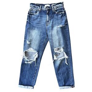 KanCan Signature High-Rise Dark-Wash Distressed Cuffed Women's Jeans 27X30