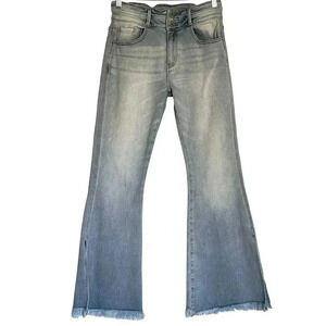 KanCan Signature Jeans Womens Size 28 High Rise Flare Light Wash Raw Hem