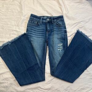 KanCan Signature mid-rise flare distressed ripped denim jeans women’s 23, inseam 29”