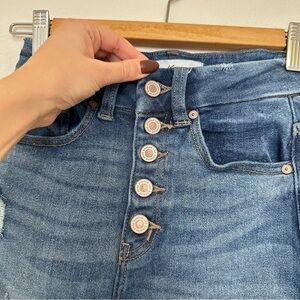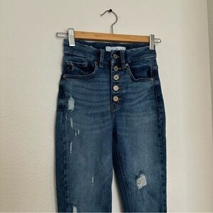 KanCan Skinny Distressed Chewed Hem Jeans Medium Wash Button Front Size 23 Women