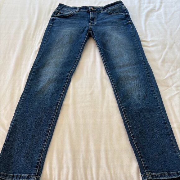 KanCan Jeans in 54% Cotton, 34% Rayon, 10% Polyester, 2% Spandex. Style # KC11214CHD. In excellent preowned condition! Measurements taken flat and unstretched: Waist 14", Front Rise 8 1/2", Inseam 27 1/2".