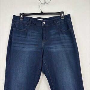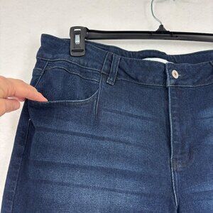 KanCan Skinny Mid Rise Jeans Womens Size 18 Dark Wash Stretch Denim Hem Slits