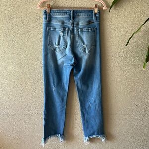 Elevate your style with these chic blue distressed jeans. Perfect for a casual day out.