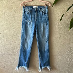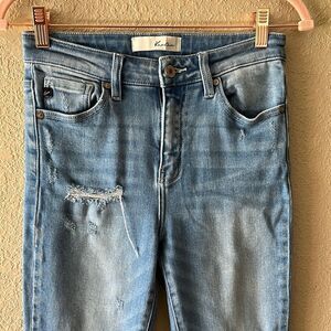 KanCan Stylish Blue Distressed Women's crop Jeans