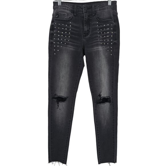 KanCan Womans size 7/27 Estilo Studded Distressed Skinny Denim Jeans in Black
