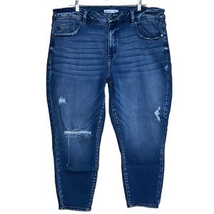 KanCan Women High Rise Curvy Fit Distressed Cropped Skinny Jean Blue Denim - Size: 22