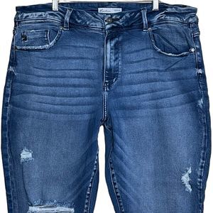 KanCan Women High Rise Curvy Fit Distressed Skinny Jean Blue Denim Dark Wash 22