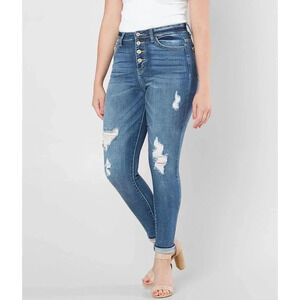 KanCan Women Size 29 Medium Washed Color Distressed Kurvy Ultra High Rise Jeans