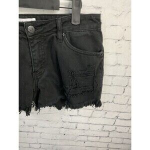 Kan Can Womens Black Distressed Cutoff Shorts Cotton Pockets Size S (T2).