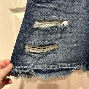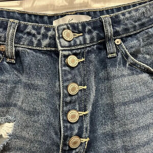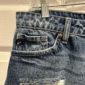 KanCan Women’s Blue Jean Shorts Sz Large Waist 30” High Rise Distressed Frayed