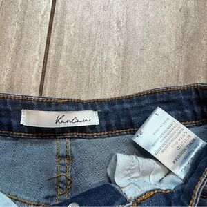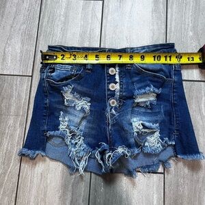 KanCan Womens Dark Wash Distressed Button Fly Denim Short 24