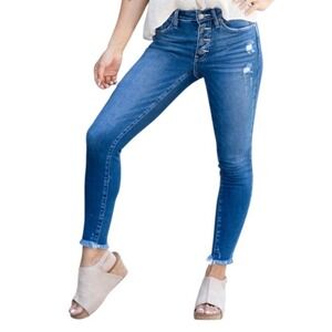 KanCan Women's Jeans High Rise Skinny Blue Distressed Button Fly 9/28
