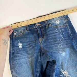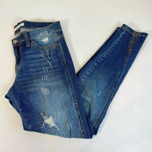 KanCan Womens Mid Rise Ankle Skinny Jeans Blue Size 25 Distressed Twisted Seam