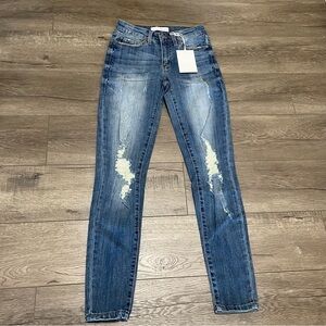 KanCan Women’s Mid Rise Jeans Distressed Ripped Medium Wash Sz 1/24 NWT.