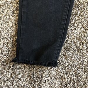 Elevate your denim game with these women's KanCan high rise super skinny jeans in black. These jeans are designed to flatter your figure and give you a comfortable fit all day long. The dark wash fabric and frayed hem add a touch of edginess to your outfit. Crafted from premium quality denim, these jeans are durable and made to last. These jeans are a must-have for any women's wardrobe and will easily become your go-to denim. They are in excellent condition, please see photos for full details.