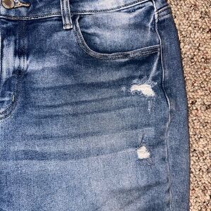 KanCan Women's Mid-Rise Ankle-Skinny Blue Distressed Jeans. Size 31