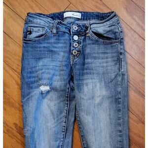 KanCan Womens Skinny Jeans Size 0/23 Blue Denim Distressed Button Fly