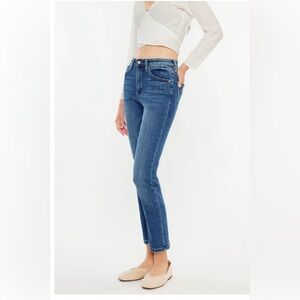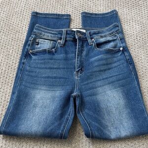 Classic slim straight leg jeans by KanCan. Features a timeless blue wash. Perfect for casual wear.
