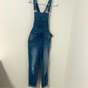 KanCan Women’s Small Dark Wash Distressed Overall Jeans Size Small Cottagecore