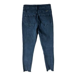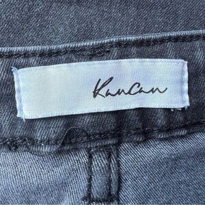 Women’s size 5/26 high rise skinny ankle jeans by KanCan. These button fly jeans have a freyed hem at the ankle and a washed black color. In good pre-owned condition with no flaws. Measurements shown in photos.